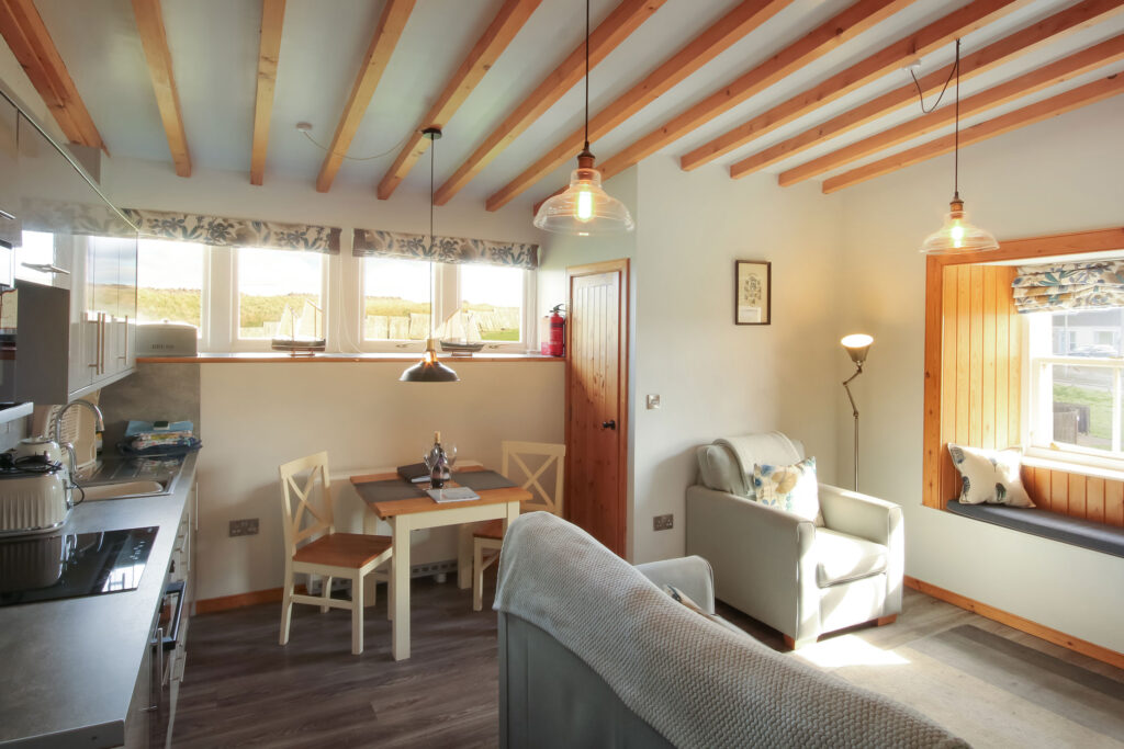 Sleeping two, Nisbet’s Tower consists of a king size bed and shower room on the ground floor, with stairs up to an open-plan living, dining and kitchen and living area on the first floor.